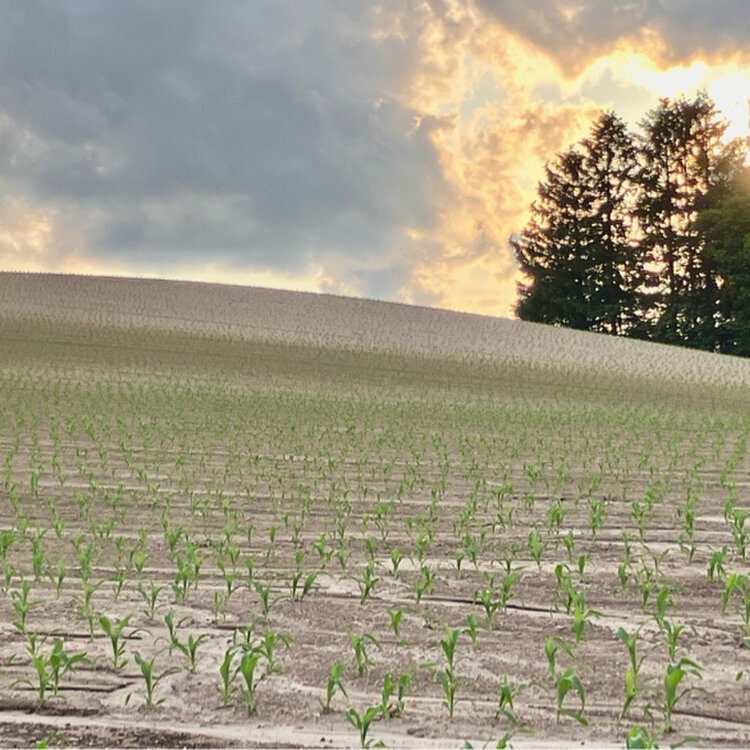夏色〜夏の実りへ 小麦畑の麦たちは太陽の光を浴びて スクスク育っています 夕陽に照らされて黄金色に向かって輝き始めた小麦畑 まだまだその色を濃く…輝かせてくれます
