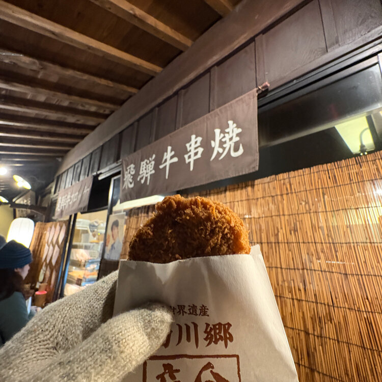 ❄️雪景色ライトアップ❄️🪾冬の白川郷˙ ✩゚˖🕯️✨⋆。˚꩜ 寒いので、とにかくあったまりたい🌀 となると熱燗です🍶 飛騨牛コロッケや牛串、アテには困りませんでした😊 #開運旅 #白川郷 #白川郷ライトアップ #合掌造り #世界遺産 #冬の白川郷 #雪景色 #岐阜旅行 #飛騨 #日本の原風景 #ことりっぷ岐阜 #冬旅 #幻想的な風景 #ことりっぷと一緒 #岐阜 #合掌造り #ライトアップ #熱燗