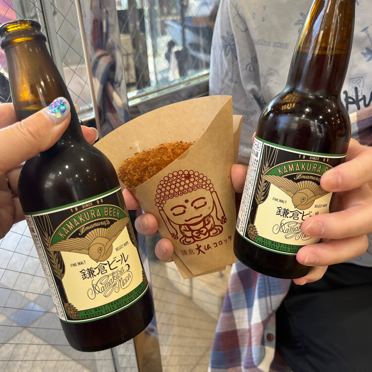 急遽🍺鎌倉ビール 月(アルト)を別店舗で購入して、ジーニーマジックで購入した鎌倉大仏コロッケと共にいただきました。