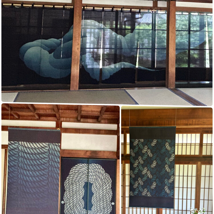2025年6月1日(日)~ 7月13日 (日)まで、「半夏生」の美しい夏の始まりに合わせて、世界的に活躍する藍師・染師 BUAISOUの「縄夏生BUAISOU展覧会」が開催されています。藍染という日本古来の技術にBUAISOUが新たな感性を吹き込んだ掛け軸や襖絵、 暖簾など約15点の作品が展示されていて、通常は12時からの公開ですが、特別拝観に参加すると、一緒に見る事が出来ます。