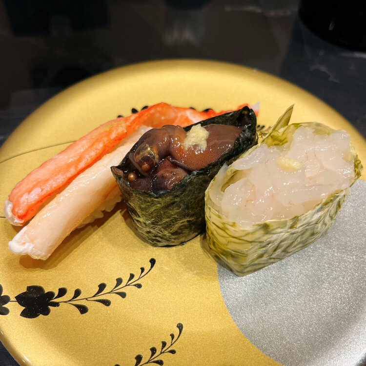 新幹線に乗るギリギリまで日本海の海の幸を堪能すべく、旅の〆は駅近の回転寿司へ🍣