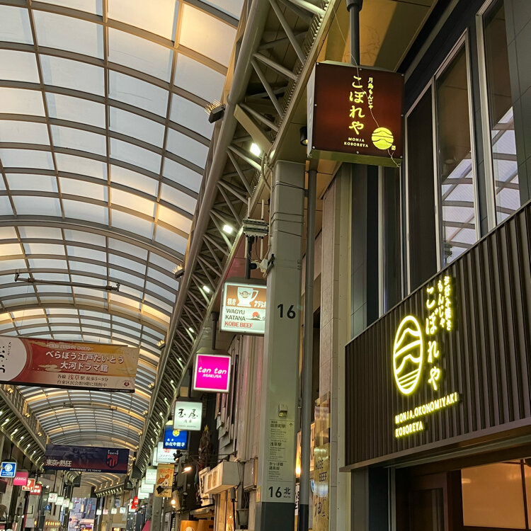 色々見ていると、美味しそうなもんじゃ焼き屋さんを見つけ、ちょうど席もあいていた🎶