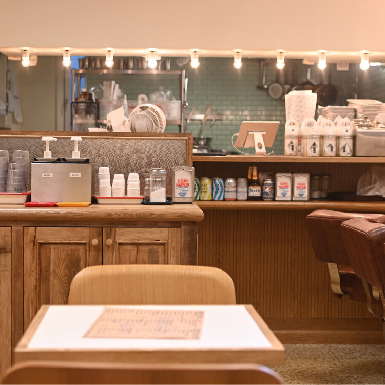 内装はアメリカの⽥舎町のダイナー(⼤衆⾷堂)や