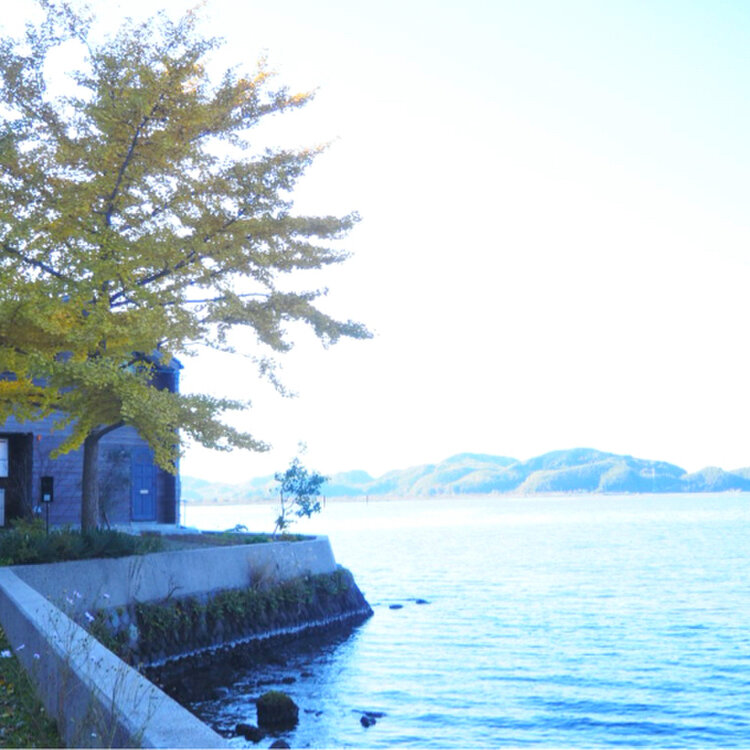 山陰の湖畔にある工芸と服の店。