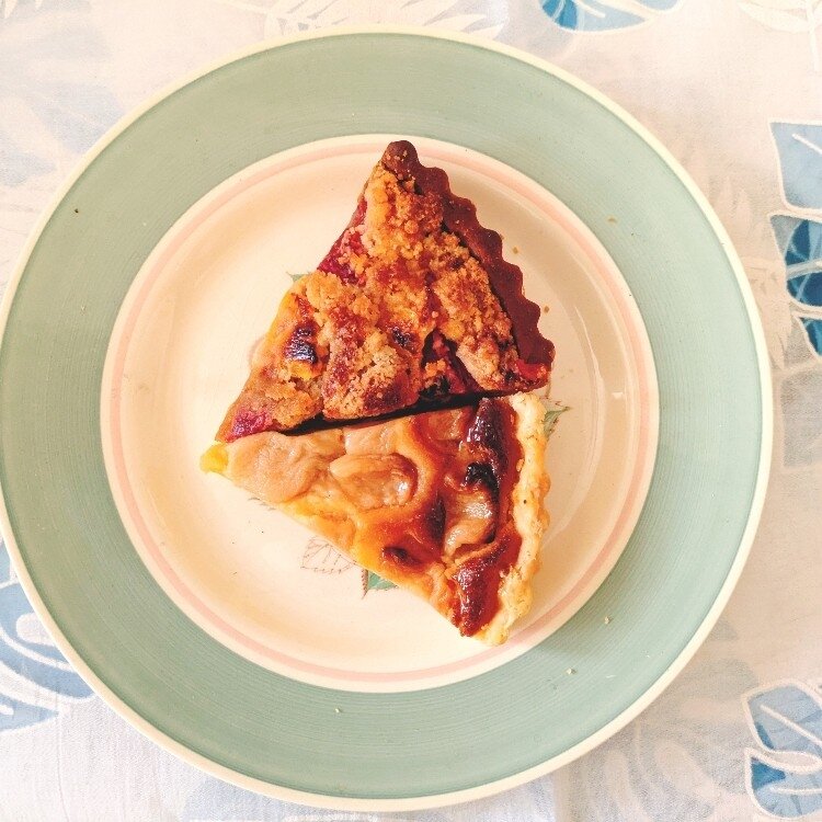 10周年をお祝いして、記念のクッキー缶、気になった焼き菓子桃のタルトとクランベリー?のタルトをお土産にしました。