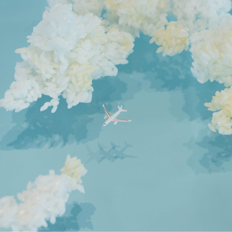 ②田中達也さんのミニチュア『ハブ ア ライス トリップ』神戸空港にて 空の上はこんな感じでした!