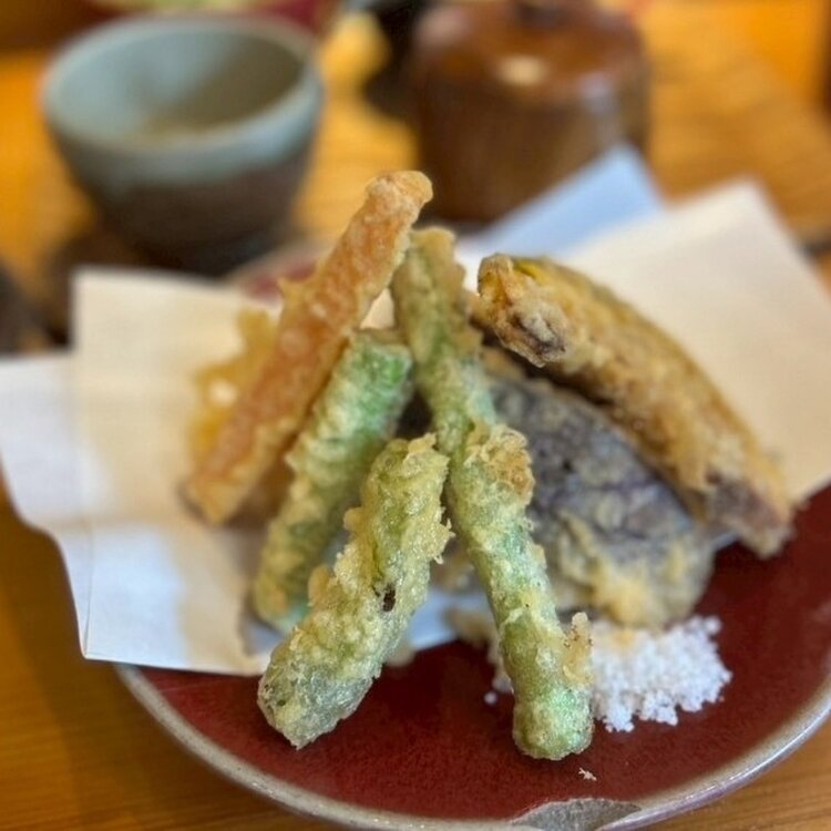 鎌倉へ日帰り旅… お出汁の良い香りに引き寄せられてお昼ごはんを食べることにしました。 冷たいお出汁の釜揚げうどんはシソと梅と薬味でさっぱりと食べられました。 そして、初めて食べた焼き芋の天ぷらの美味しさに感動✨✨ さつまいもにじっくり火を通して甘味を引き出してから天ぷらにしているそうです🍠 お隣のお店でお出汁が買えるので、家でも引き続き楽しんでいます。