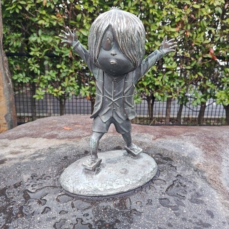 【夫婦2人で山陰を旅する*その20〜水木しげるロード 舐めちゃいけない怖い編】 はるばる来たなぁの気持ちと共に、やっと雨もあがりました。 境港は漫画家・水木しげるさんの出身地でもあり、漫画の原点にもなった場所です。 遊び心も更に本気度ハンパない! 駅から水木しげる記念館まで約800m続く「水木しげるロード」には多くの妖怪ブロンズ像が立ち、妖怪を意識したスポット・グッズを売るお店も並んでおり、楽しいです。 1993年誕生(ブロンズ像23体)を経て、30年以上の歴史なんですよ。(2024年178体!) 妖怪ガイドブック(600円)を手にして、スタンプを集めるお楽しみに参加するのもオススメです。 どんより曇りで撮影した怖いをまとめてみました。 ようこその鬼太郎(トップ) 街灯には「目玉のおやじ」(2枚め) 何でもない木も、怪しげな空気を漂わせています・・・(3枚め、5枚め) 「目玉のおやじ」ブロンズ像の後ろの幹も、もしや目が付いてる?でドキリ!(笑)(4枚め) あなたはどれが怖かったですか? #秋の装い #ことりっぷ鳥取 #妖怪ワールド #境港へ #ゲゲゲの鬼太郎 #夫婦旅 #どうにかなる #珍道中 #水木しげるロード #怖い
