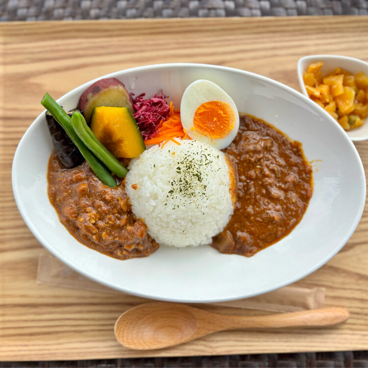 カレー🍛や卵かけご飯🍚🥚(いろんなお惣菜付き)を堪能❣️テラスでも楽しめまーす❣️