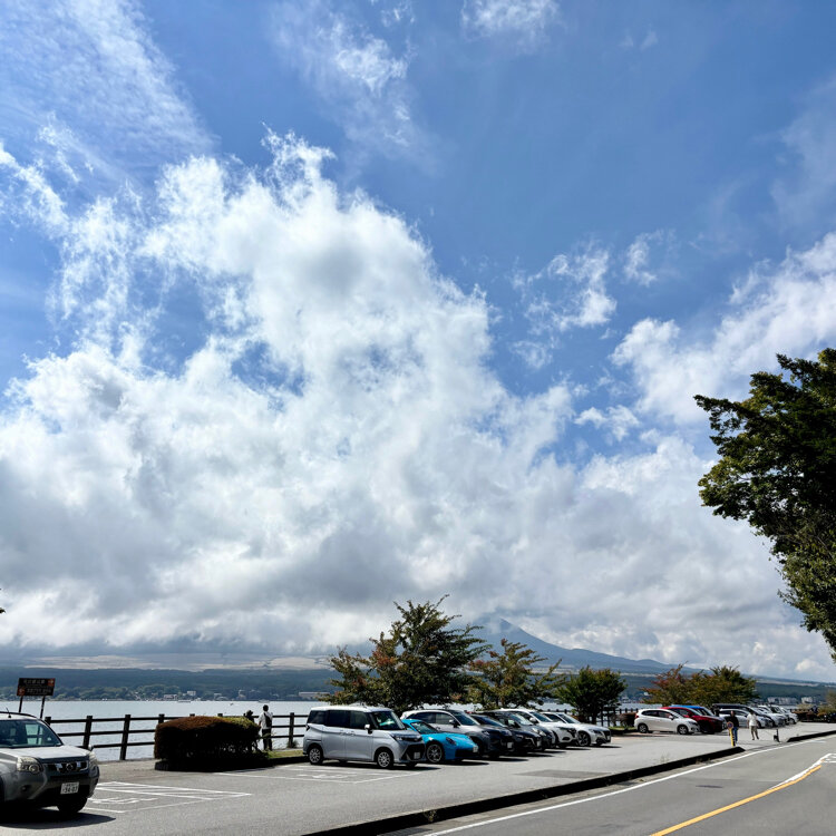 この日は道向かいの駐車場の向こうに、富士山が雲が くれ☁️🫥☁️