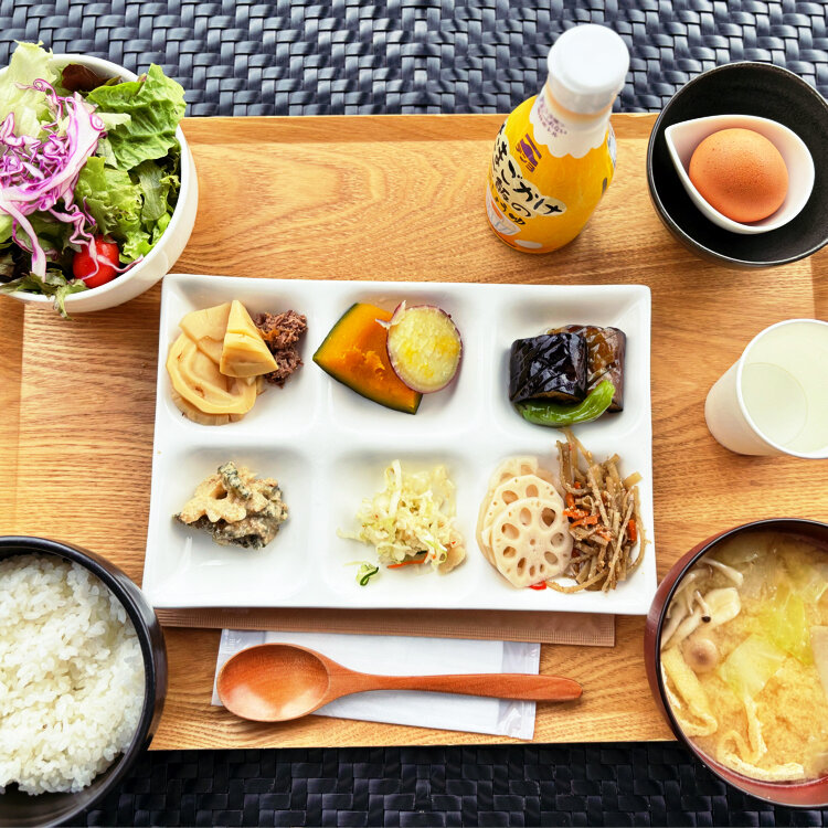 卵かけご飯🍚🥚(いろんなお惣菜付き)を堪能❣️テラスでも楽しめまーす❣️