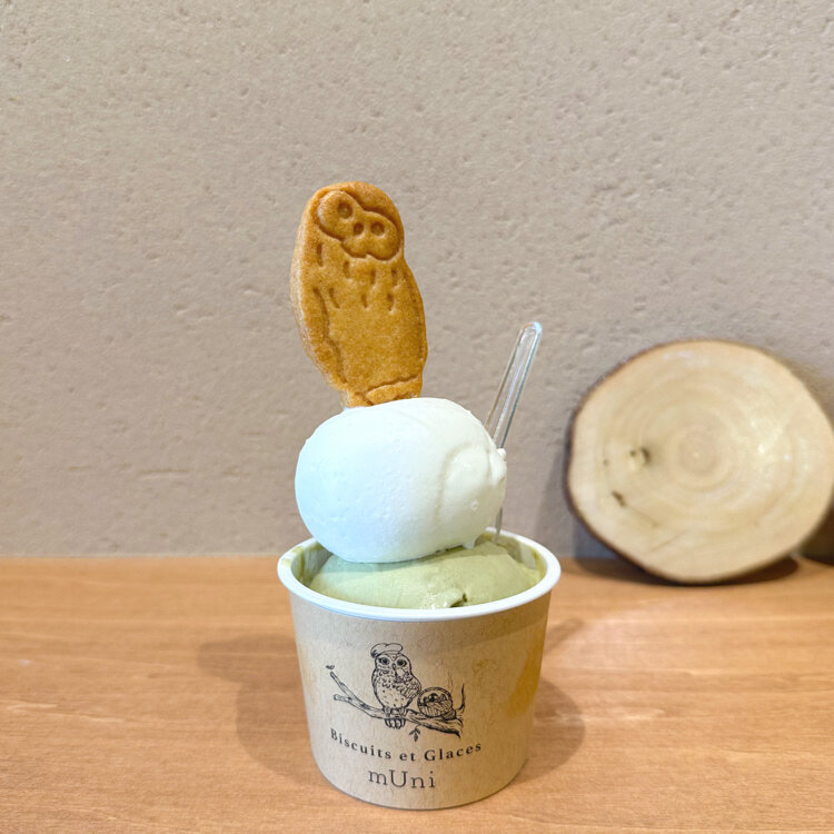 「mUniのリッチミルク」とフクロウクッキートッピング🦉