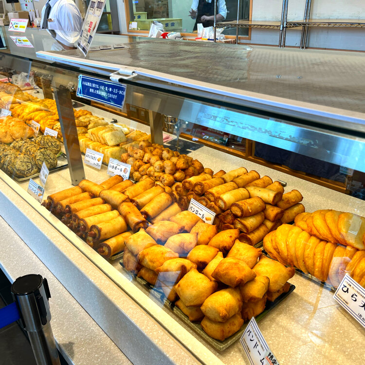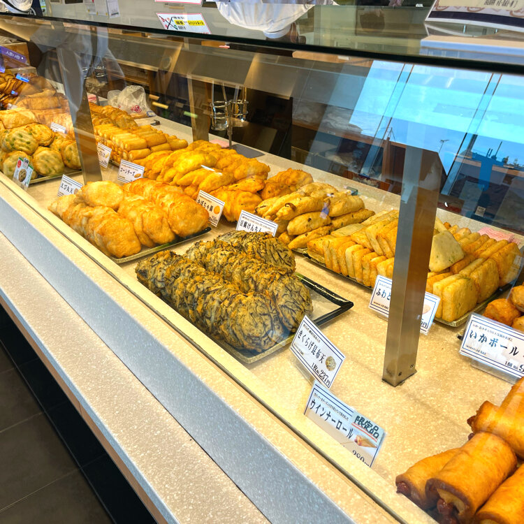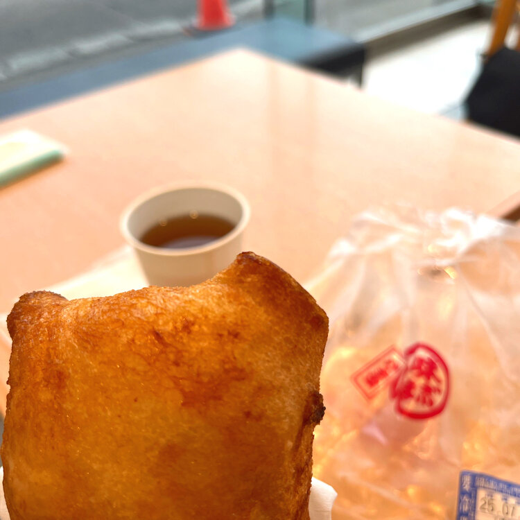 限定品のパンドーム(チーズ、ベーコン、玉ねぎ入りのすり身をパンで包んで揚げた物)