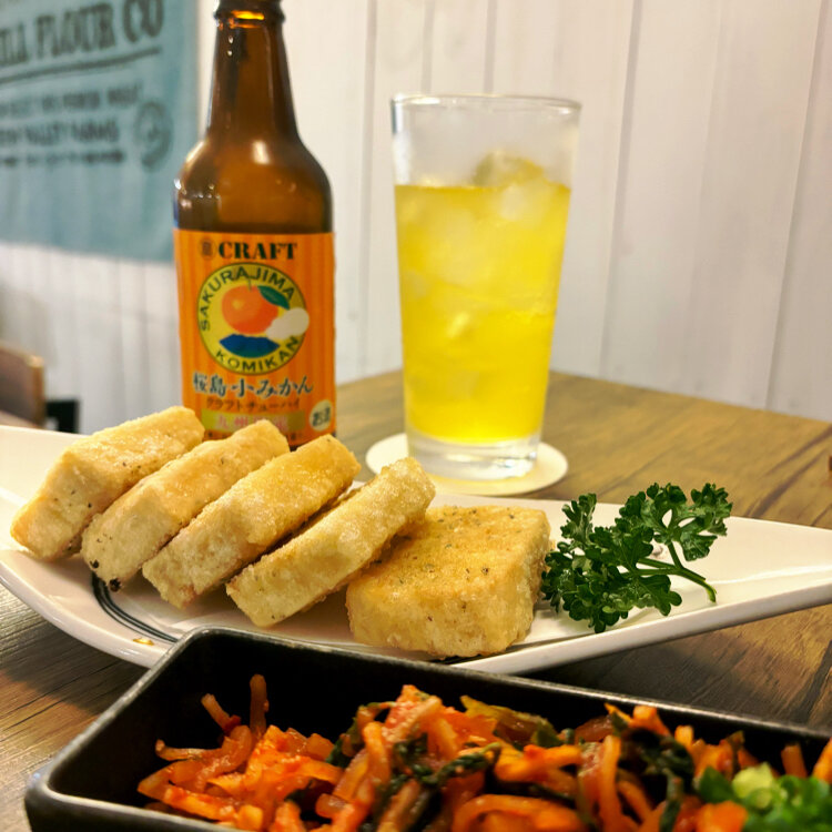 前日は生の屋久島豆腐を食べたけど、揚げたの美味しい。