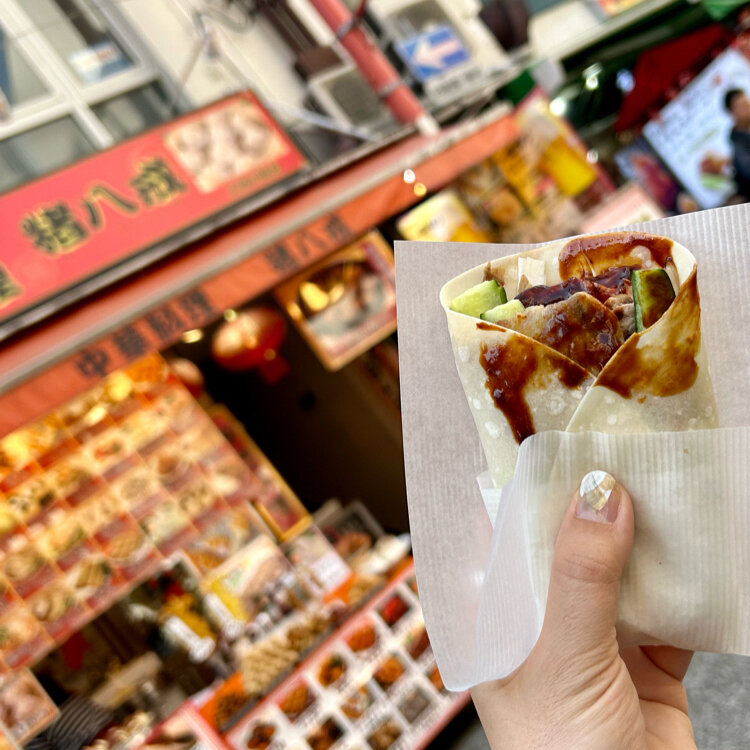 【南京町】 メリケンパークから南京町までお散歩しながら移動します🚶♂️🚶 バスとか調べて移動しようかと思っていたんですがこちらも意外と近くて楽しくおしゃべりしながら歩けちゃう距離でした 南京町は春節の時期が終わった頃にお邪魔したのにまだ赤い提灯やランタンオブジェなどの飾り付けが残っていていつも以上に華やかな雰囲気でした🏮🏮🏮 いつもより中華色の強い雰囲気も楽しめて嬉しかったです😆 南京町に来たら‼︎やっぱり中華食べたいですよね😋 今回はお店には入らずにお昼を兼ねて中華ちまきと北京ダックを食べ歩きでいただきます🐔 まわりのみなさんもそれぞれ美味しそうにいちご飴やパンダ饅などを堪能されていました😊 食べているのを見るとどれも美味しそうでつい食べたくなりますよねぇ🤤 (2026.3.1) #中華街 #食べ歩き #春節 #お散歩 #日本三大中華街 #日本三大 #開運旅 #日本盛蔵開きと神戸の旅 #南京町 #ことりっぷ神戸