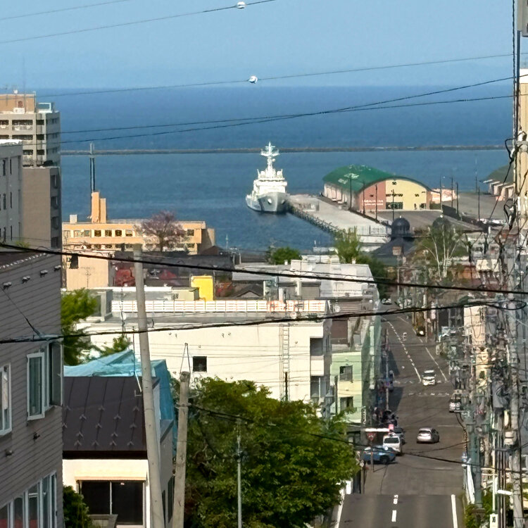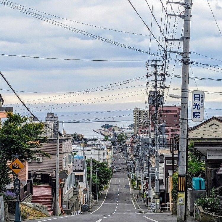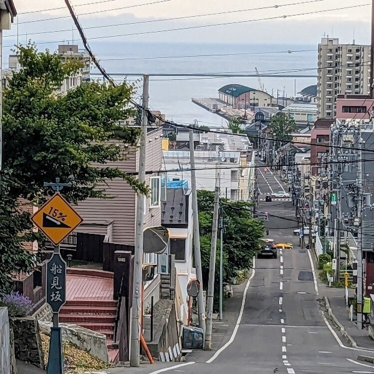 私の小樽探訪 坂めぐり最終回 【船見坂】   観光スポットにもなってる有名な坂 その名の通り真っ直ぐ下に 港と船を見ることができます。 近くには小樽で観光客に一番人気であろう市場 三角市場があったり、小樽駅も近いですね😆 今日はあいにくの天気でした 青い海には会えず残念でした🥺 #美しい町 #私のことりっぷ旅 #船見坂 #三角市場 #小樽駅