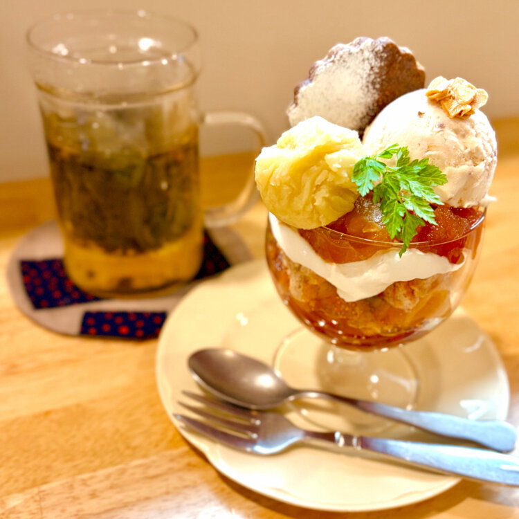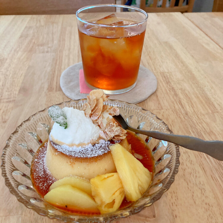 ラム酒香るミルクプリン、スパイスを混ぜ込んだケーキ、自家製ラムレーズンチーズアイスと