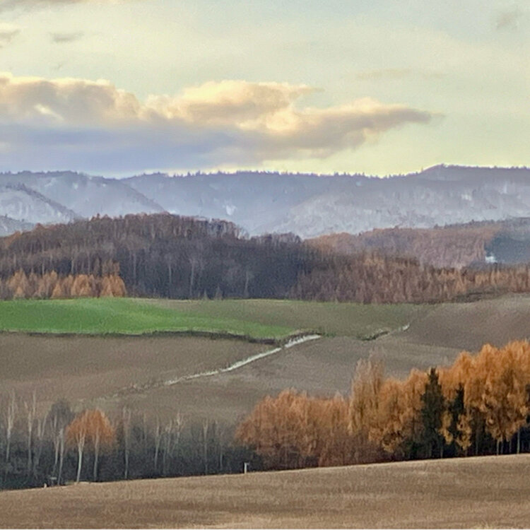 11月の丘〜 すっきりとした晴れ間には中々出会えなくなりました 変わりやすい空模様は…季節が次へと進んでいる証 雪が残る場所や光が差す場所… それでも丘は美しく 11月らしい色彩と温もりと冷たさで次の季節へ進んで行きます