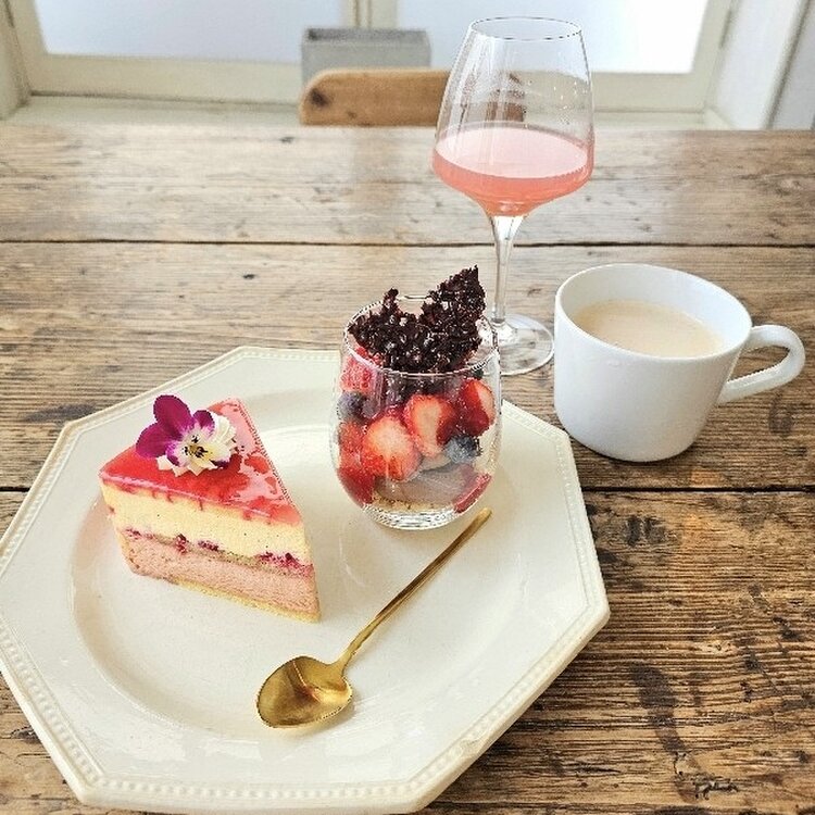 この日のL’ assiette du jour (本日のプレート)は『ショコラとベリーのグラスデザート🍫🍓🥄』と『カジノ🍰🌺』です✨️