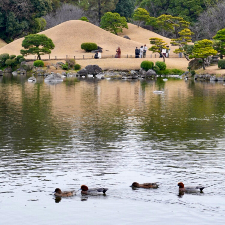 そのほかは水前寺公園内の様子です。白いサザンカの花がハートに見えたり、水鳥が仲良く泳いでいたり…平和な空気が流れていました。