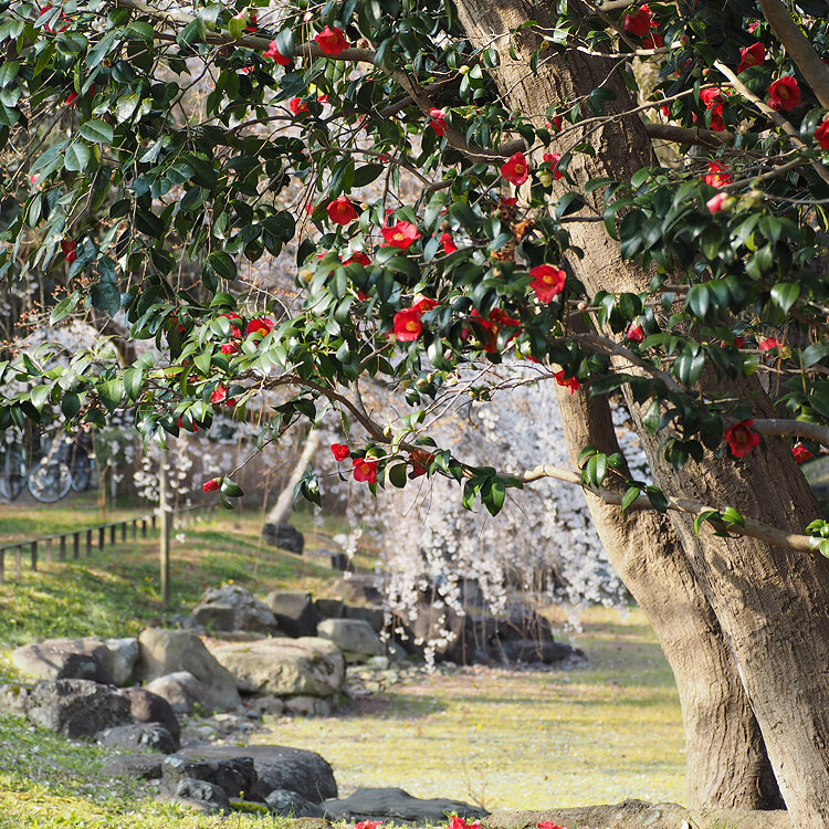 植物園の紅葉の中と笹藪で姿が