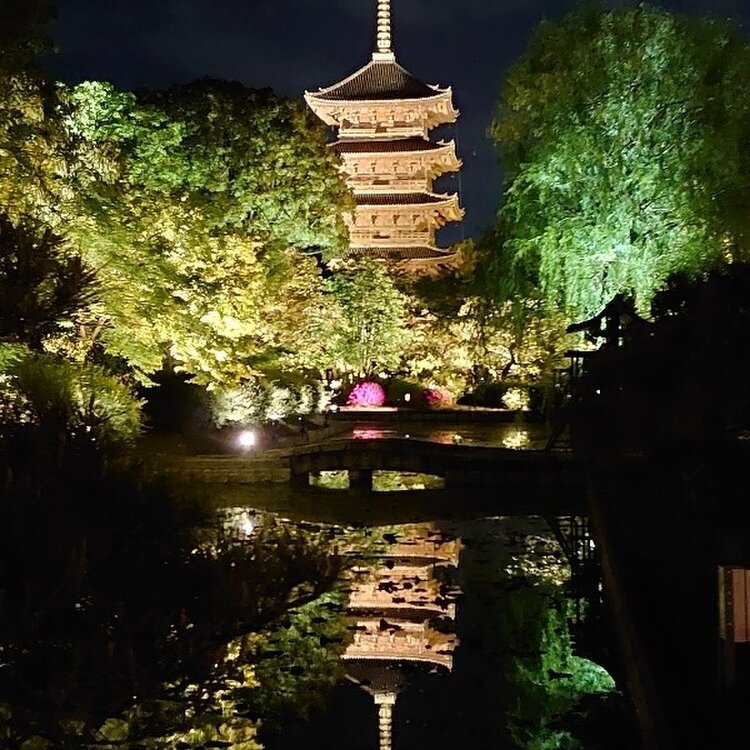東寺のライトアップは、桜だけじゃない。 緑に浮かぶ五重塔と、水に浮かぶ逆さ五重塔。♯ライトアップ