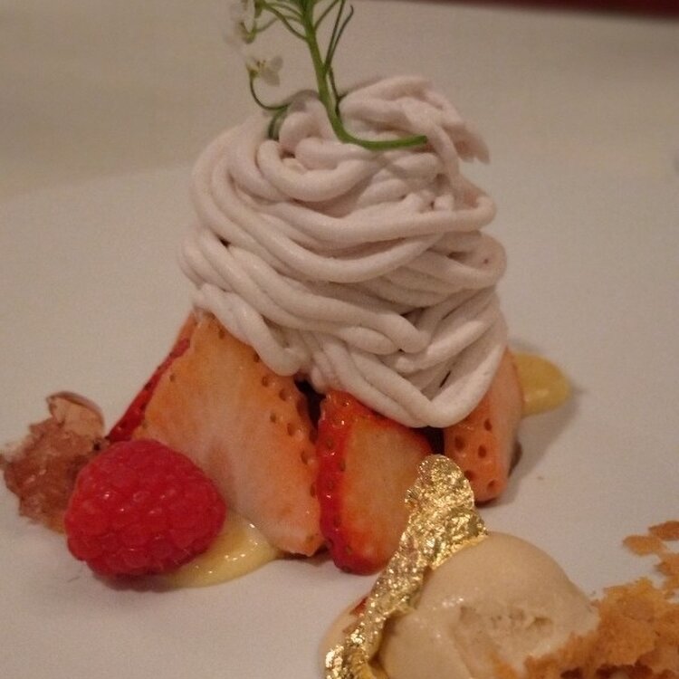 組紐教室の新年会に参加してきました✨ 前菜から魚、メイン、デザート、どれも美味しかったです🥰 #前菜 #スープ #魚 #お肉 #デザート #苺