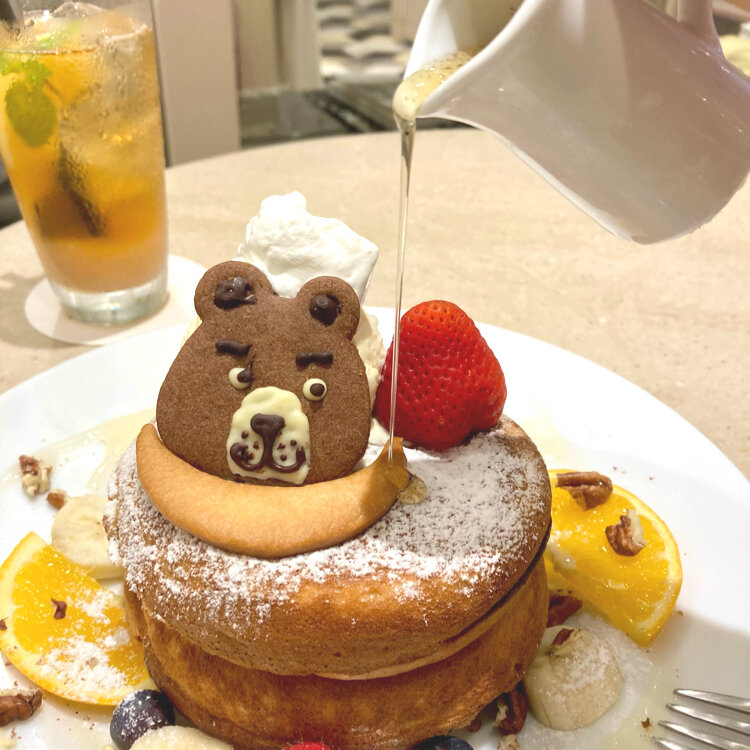 私はまだお腹がすいていないので、パンケーキをちょっとだけ分けてもらって、あすかルビーいちごのアイスストロベリーミルクをちゅーちゅー楽しみました𐀑 ꪾ