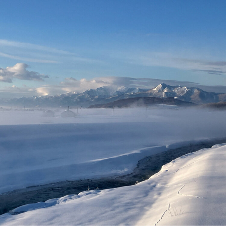 氷点下の朝にダイヤモンドダストの小さなカケラも見せてくれました