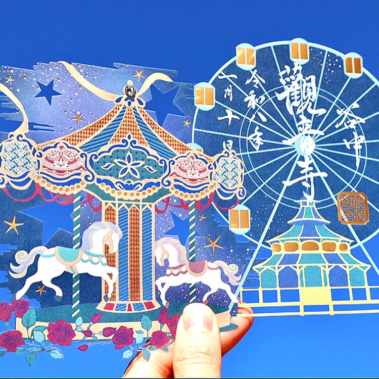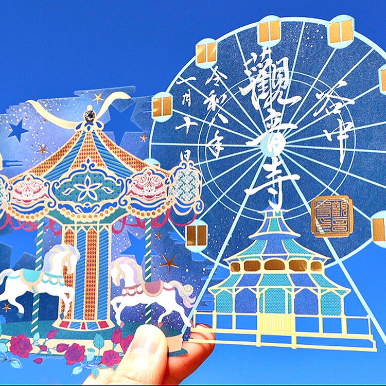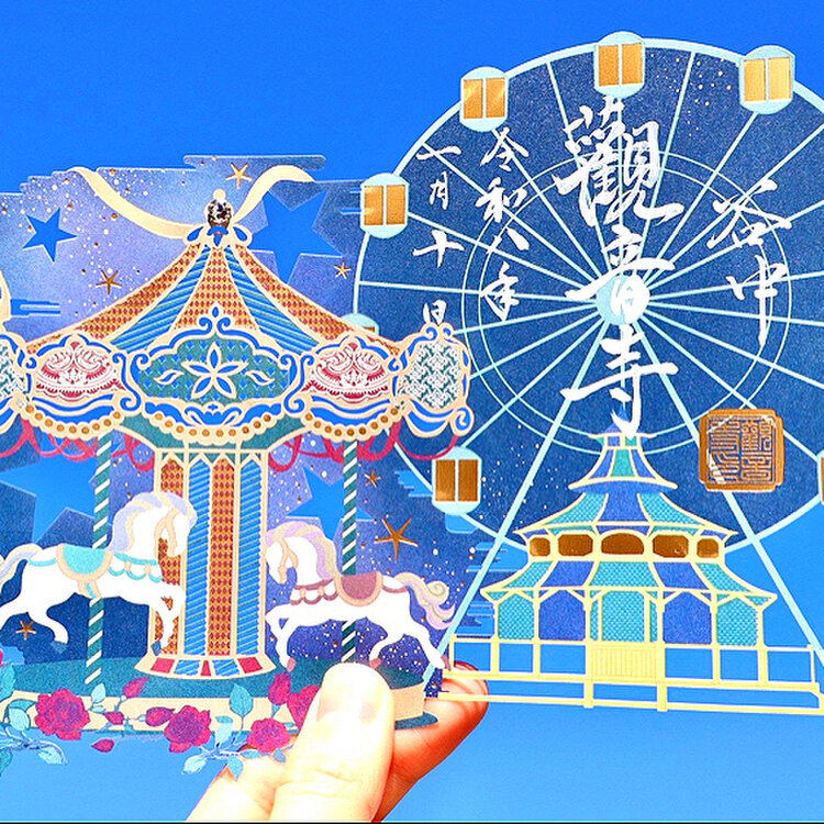 ⭐️星降る遊園地🎠🎡 : 谷中観音寺さんの冬限定切り絵御朱印❄️ : 澄んだ冬の夜空に輝く無数の星たち🌌 星のきらめきに包まれた遊園地では、メリーゴーランドと観覧車が静かに誰かを待っているようです🎠🎡 : 冬のシンとしたどこまでも駆け抜けるような雰囲気や空気感が好きです😌 そして、星やキラキラが大好きです🌟 この御朱印から感じる冬の透き通った雰囲気と星のきらめきに恋して、谷中観音寺さんへやってきました🐾 切り絵の星に、金の箔押しの星、光の粒✨ 星がかわいくて綺麗で…🌟 メリーゴーランドと観覧車のメルヘンな感じがかわいくて…🎠🎡💕 一目惚れでした☺️ : メリーゴーランドの屋根のてっぺんにはスワロフスキーが埋め込まれていて本当にキラキラです✨ そんなキラキラにもときめきました💕 メリーゴーランドをよく見ると、屋根のデザインが素敵でそこもお気に入り😊 : メリーゴーランドのお馬さんは午年にぴったり🎠 メルヘンでかわいい馬モチーフの御朱印はなかなか見かけないので、出会えることができて幸せです😊 さらに大好きな星モチーフで幸せ🌟 見ているだけで、にこにこ☺︎笑顔になれる魔法のような御朱印でした🎠🎡✨ 今年もたくさんの好きに出会って、囲まれてときめきたいなと思います💙 : 📷:2026.1.10 Sat. : #開運旅 #お寺 #お寺巡り #谷中観音寺 #観音寺 #谷中 #谷根千 #お正月の雰囲気漂う #御朱印 #切り絵御朱印 #星降る遊園地 #星 #星モチーフ #メリーゴーランド #午年 #メルヘン #かわいい #スワロフスキー御朱印 #キラキラ #華やか #心晴れやかに #素敵なお寺 #東京 #1500記念投稿 #milkのミルキーな毎日