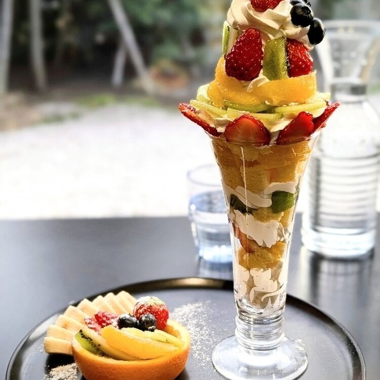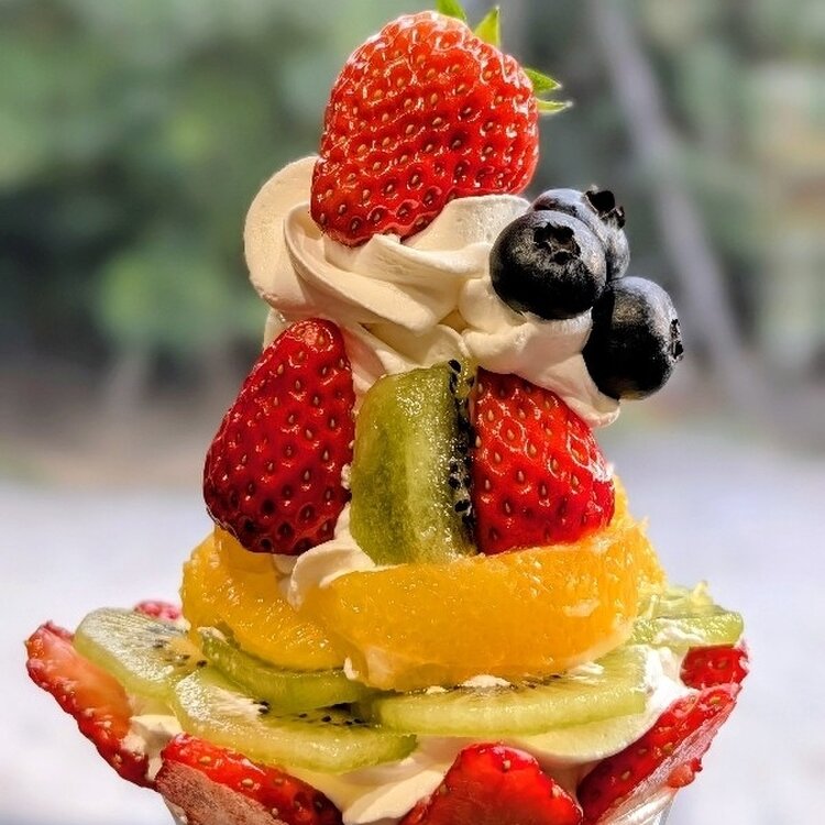 彩りフルーツパフェ🍓 フルーツ盛りだくさんのパフェに更にフルーツ盛り付き😋で1,280円 こぼさずに食べるのには工夫とコツが必要です👍 自宅から徒歩10分、毎日でも通いたい😃 eggg parkさんにて2月10日まで16:00〜19:30(要予約) #eggg_park #彩りフルーツパフェ #jun_flat