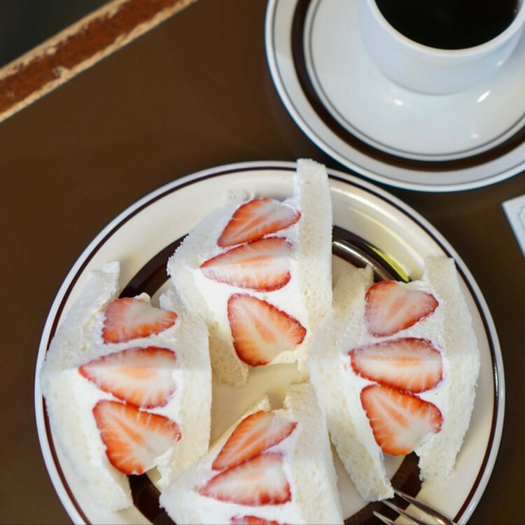 喫茶店の苺のフルーツサンド♪ 「喫茶マウンテン」 錦糸町駅の近くにある喫茶店。 週末限定でスタートした いちごのフルーツサンド。 オープンの8時からオーダー出来るので 朝食としてお邪魔して来ました。 ・ 年季の入った店内はどこか親しみやすく ほっと出来る雰囲気で 店主さんスタッフさんの笑顔で迎えられ 入ってすぐの窓際の席に座り いちごのフルーツサンドと コーヒーをお願いしました。 ・ 甘い苺とホイップクリーム パンはふわもち。 まちがいない組合せです。 ・ 昨年、ハーフサイズ(2切れ)を頂き 次はフルサイズで食べたいと… 始まりを待っていました。 ・ おいしい、幸せなモーニングになりました。 #喫茶マウンテン#コーヒーマウンテン #喫茶店#錦糸町#フルーツサンド#苺のフルーツサンド#モーニング