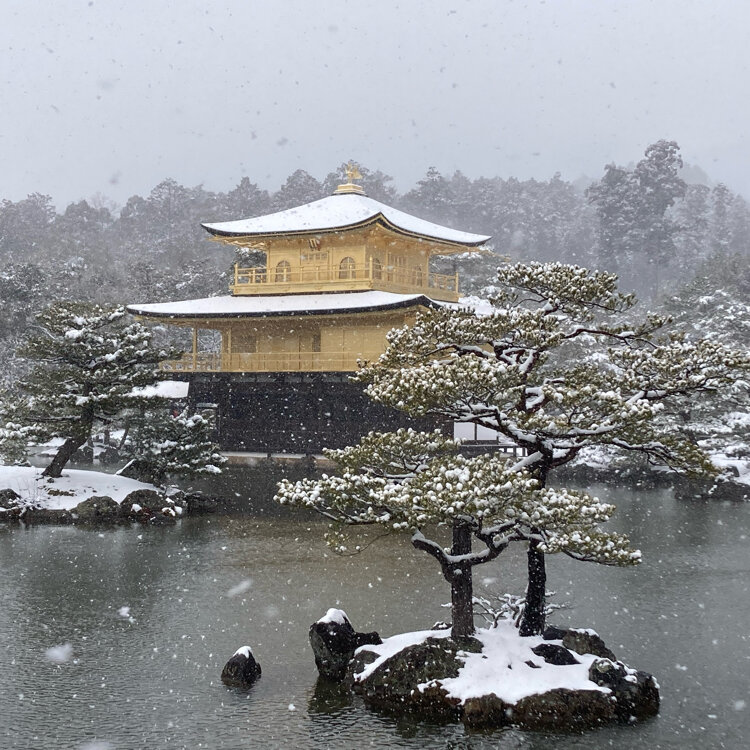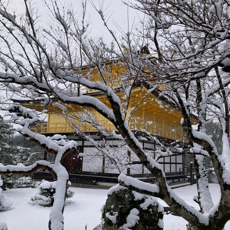 雪の金閣寺①☃️ 念願の雪の金閣寺。 道路から行列が出来て劇混みでしたが、並んででも見る価値有り! うっすらではなくここまで降ると圧巻です。