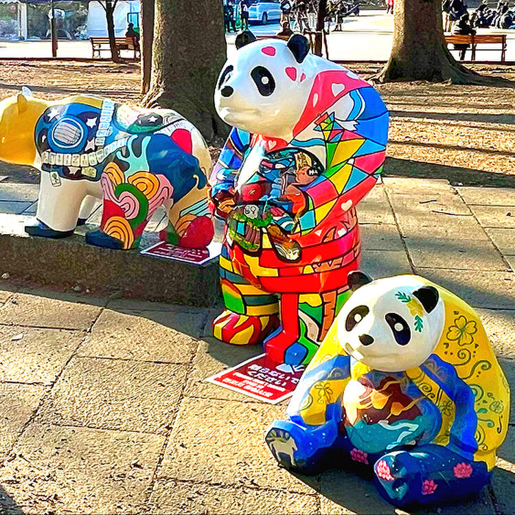 上野公園 噴水広場 通りがかりに ユニークはアートを 見つけました。 森の中で 佇む カラフルな衣装をまとった パンダ達🐼 2月13日から15日まで開催されていた "ウエノデ・パンダ春節祭2026" の ひとコマだったようです。 国内外のアーティストたちが、ホワイトパンダにペインティングを施し、アート作品に✨ 鮮やかな色彩は、民族衣装のようでもあり、個性的で目を引きます。 広場では、マルシェも行われていて 大賑わい♬ 少し遠目に 眺めて来ました。 この日、噂に聞いていた(笑) バケツとデッキブラシを持って、地面に "水で絵を描くおじさん" にも遭遇😆(5枚目) 早業で描いていく姿を目の当たりにして、しばらく 楽しませていただきました。 (イベントは、今日で終了しています) 2月13日 撮影 #アート #イベント #春節 #パンダ #上野公園 #上野公園 #東京 #ことりっぷと一緒 #開運旅