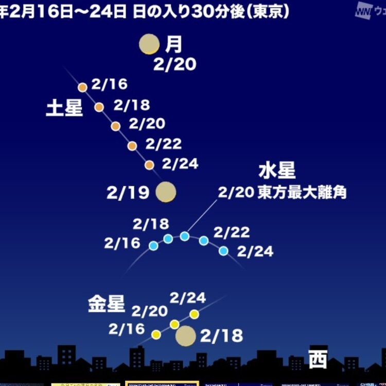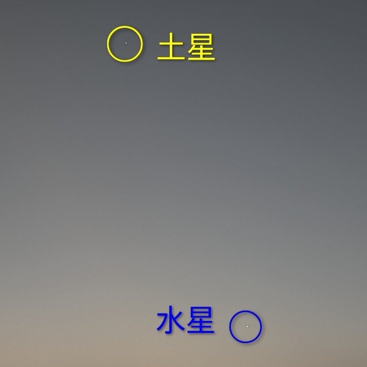 土星と水星がそれぞれ◯の中に見えました。 19日は月を挟んで土星と水星が輝きますよ。 #土星 #水星 #天体観測 #三日月 #jun_flat