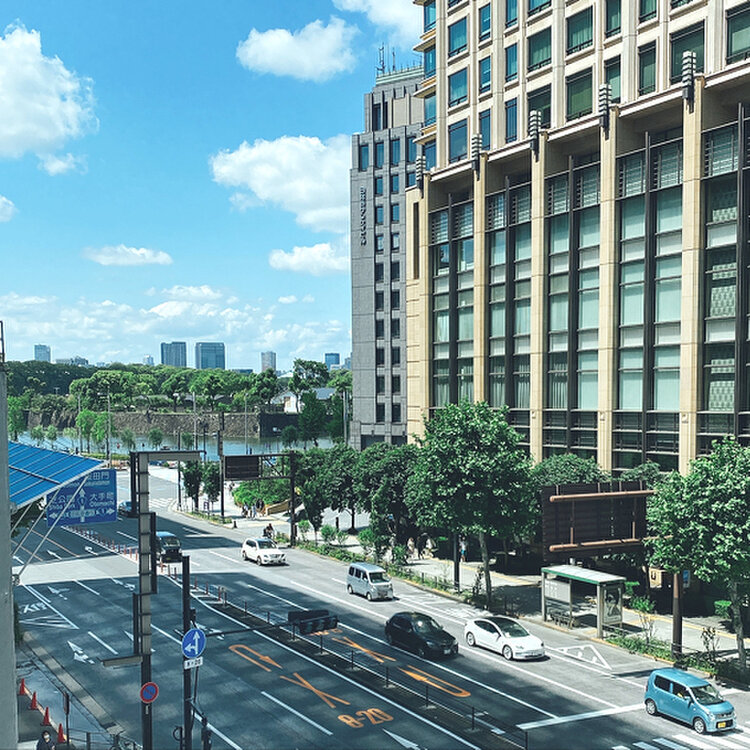 大きな窓からは晴海通りや皇居日比谷濠