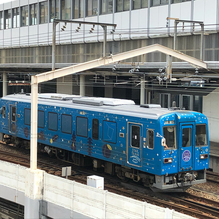 スタートレイン 岡山県総社駅と広島県神辺駅を結ぶローカル線、井原鉄道。 岡山の美しい星空をイメージしたスタートレインが走ります。 車体には、12星座と美星天文台、ホタル、カブトガニ等が描かれています。 もちろん福山のバラも。 ローカル線ならではの電車です。 写真を撮ろうと構えたら、あっという間に通り過ぎました。 車両はなんと一両。 コンパクトでかわいい電車です。 #私のことりっぷ旅 #井原鉄道 #ローカル線 #スタートレイン