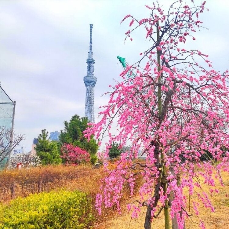 春を召しませスカイツリー✨ 河津桜が咲く旧中川にて♡ まだまだ蕾がたくさんありましたが、 思ったより咲いていました🌸🩵 今年は少し早いかも。 週末の3連休は暖かいようなので、 さらに美しく花開くと思います⚘.* ⚘⋱⚘⋰ 確実に春が来てますね・ᴗ・ #旧中川 #河津桜 #スカイツリー #桜パトロール #開運旅 #春色さがし