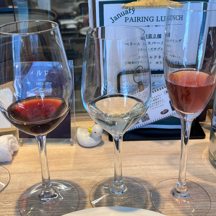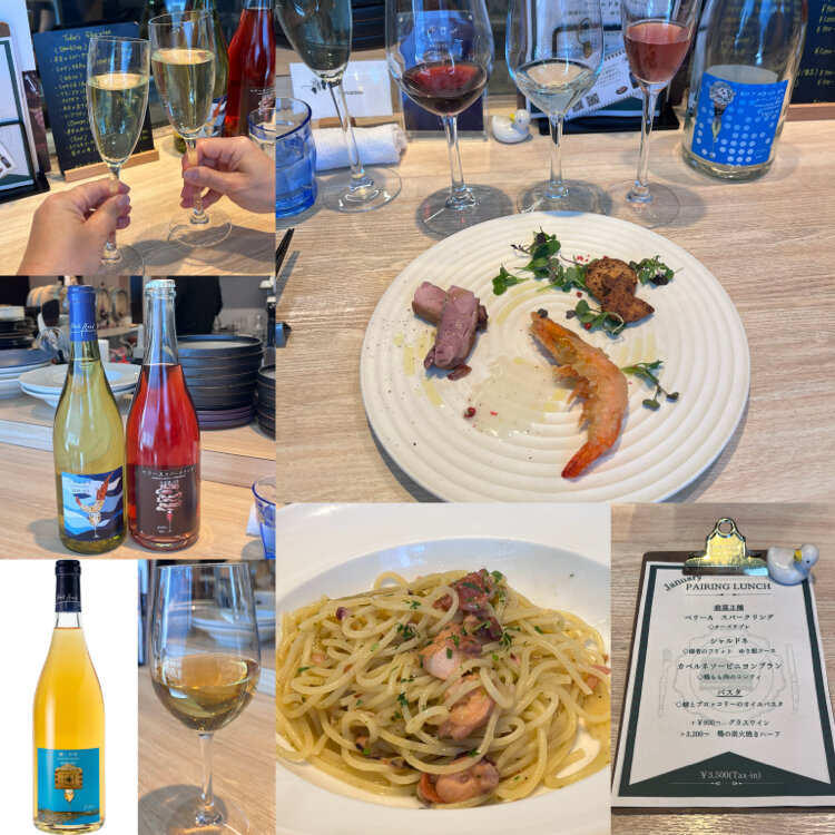 ☃️🍇ブックロードワイナリー 🥂ペアリングランチ🍽️ ‥ 🥂甲州スパークリング de 乾杯 ⚫︎ シャルドネスパークリング →苺と鯛のタルタル ⚫︎オレンジワイン 醸し甲州 →タコと芹のジェノベーゼ ⚫︎赤ワイン メルロー →京都 鴨もも肉のジャーキー ⚫︎あさりと芽キャベツのトマトソースパスタ →オレンジデラウェア TAP: ベリーAスパークリング2024 ‥