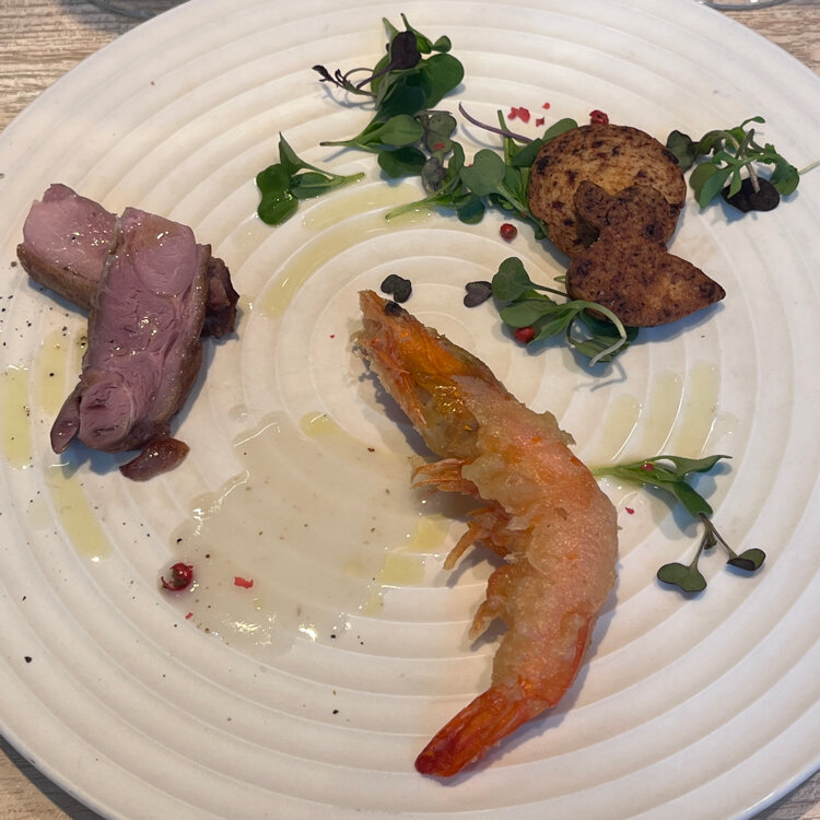 🍇ブックロードワイナリー ペアリングランチ🍽️ ‥ 今年初、今月も美味しかった😃 黒板に書いてあった今月のおススメもかなり気になりました❣️ ‥ 🥂ナイアガラシードルスパークリング de 乾杯 ⚫︎ ベリーAスパークリング →チーズサブレ ⚫︎白ワイン シャルドネ →海老のフリット 百合根ソース ⚫︎赤ワイン カベルネソービニヨンブラン →京都 鴨もも肉のコンフィ ⚫︎蛸とブロッコリーのオイルソースパスタ →醸し甲州(オレンジワイン)と😊 ‥ TAP: デラウェア2025(微発泡) ‥ #東京 #仲御徒町 #ブックロード #ランチ #ワイン 葡萄人 御徒町 鴨一 2026/1/17