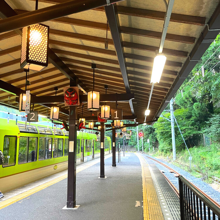 鞍馬駅🚃 . 叡山電車の青もみじのライトアップで きららの座席確保の為、終点の鞍馬駅まで来ました. . 鞍馬駅にはあちこちに怖い顔した天狗さんが いっぱい...👺👺 改札を出てきららの電車が到着するまで 駅近くを散策すると、鹿さん発見🦌 親子のようでした. 直ぐに人に気づいて山の中に入って行きましたが こんな場所に野生の鹿に出会うなんてびっくり! 少し坂を登ると、鞍馬寺もありました. . 時間になってライトアップ最初のきらら号に乗り込めました. こちらの駅で乗車した人は数人で 次の貴船神社のある貴船口からはたくさんの人が乗り込んできて、鞍馬駅からの乗車は正解でした. たくさんの天狗さんにも会えたし、良かったです. 京都の北の地で清らかな水、木々の深い緑に癒された日となりました. 📷2024.7.6 #叡山電車 #叡山電鉄 #鞍馬駅 #鞍馬 #青もみじ #青もみじのライトアップ #天狗 #鹿 #鞍馬寺 #京都 #ことりっぷ京都