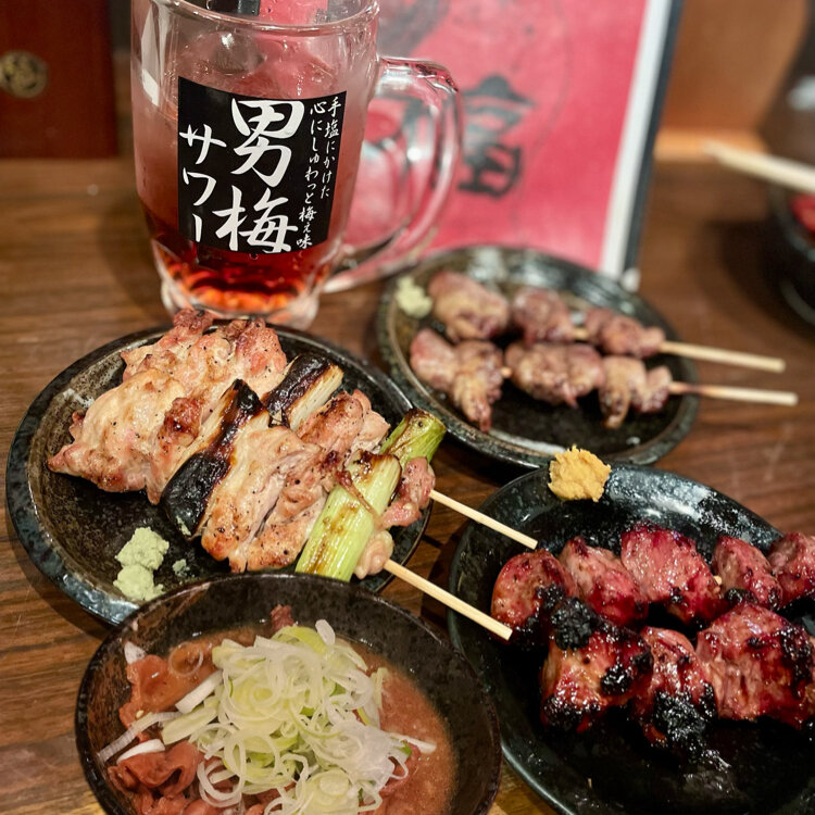 ★.*⭐︎.炭火焼き鳥•大福.⭐︎*.★ 金曜日、京成実籾駅の有名焼き鳥屋さんを再訪問。ビールと男梅サワーで乾杯して、 ねぎま、ハツ、ネギ味噌パンチ、豚カシラ、もつ煮、カワ、チーズチキン、焼きなす、にごり梅酒とゴマ焼酎「紅乙女」で締めました。 ごちそうさまでした♡ 相変わらずとっても美味しいです(^^) #焼き鳥#居酒屋#京成沿線#金曜ナイト#乾杯