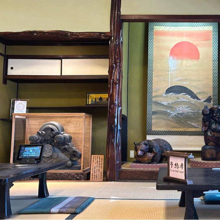 2階のお座敷には昭和初期に新築した際、設置された鬼瓦が飾られています
