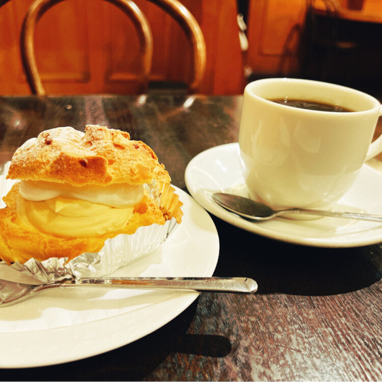 神楽坂シュークリーム 洋菓子と珈琲のお店、コパンへ。 お仕事前の寄り道、神楽坂シュークリームをいただきました☺️ シューはちょっぴり硬めの懐かしい味。 生クリームとカスタードはたっぷり二層♡ これでお値段、珈琲と合わせてワンコイン✨ 店内も居心地よく、お客さんは新聞や本を読んだり思い思いに過ごしていました。 長年常連さんに愛されているお店いいですね😌 #シュークリーム #神楽坂 #喫茶店