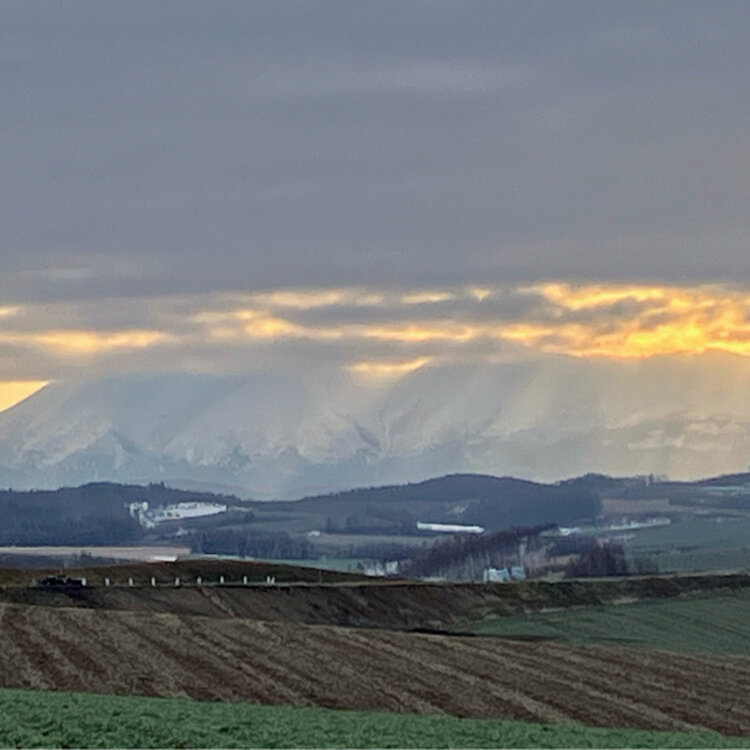 十勝岳連峰を望む高い丘から