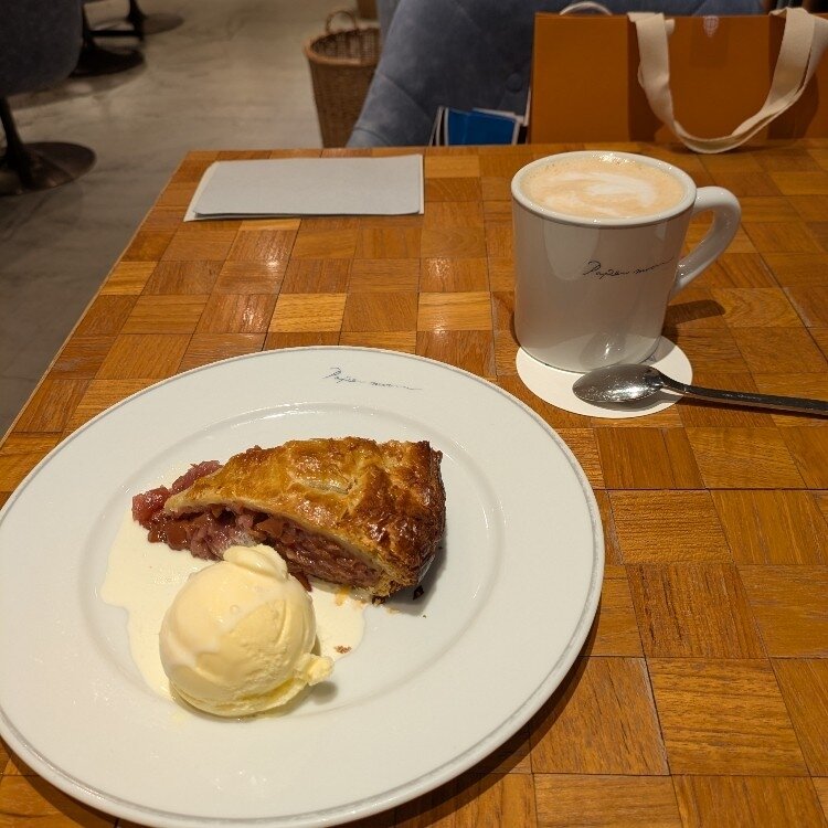 【立川・PAPER MOON】 お気に入りのお店で、つい寄ってしまいます★ 写真はチェリーパイです🍒✨❗️甘酸っぱさが癖になります。一緒にアイスクリームもつけてくれました。(溶けているのは、私が写真を撮ったタイミングが遅かっただけです💦)今季限定のドリンクもオススメです★イルミネーションも美しいです😊✨
