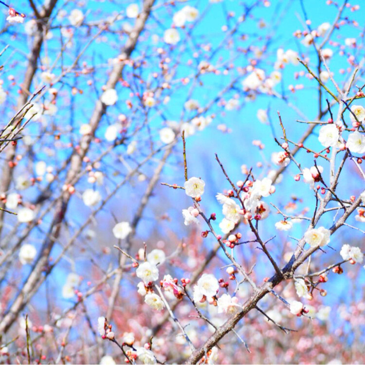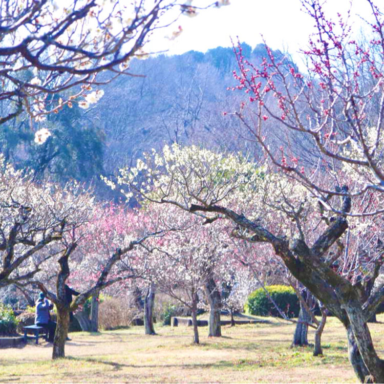 この地に最初に城を建立した太田道灌が天神社をまつり、数百の梅を植え、今でも百本近くの梅が香しい甘い香りを放っています。