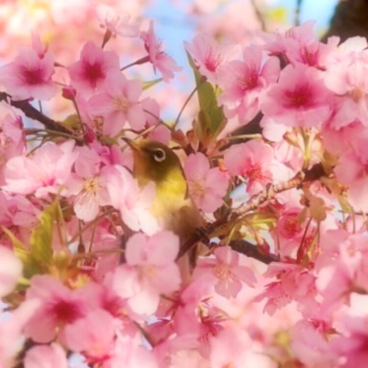 ⁎:。❀*.河津桜×メジロ②.*𓅫.。:⁎ 錦糸公園のサクジローは、とっても凛々しい顔をしていました(笑) もふもふの河津桜のなかにスクッと胸を張って立つ姿は、とってもイケメン(^^) クールサクジローに胸キュンです♡ #メジロ#河津桜#サクジロー#錦糸町#錦糸公園