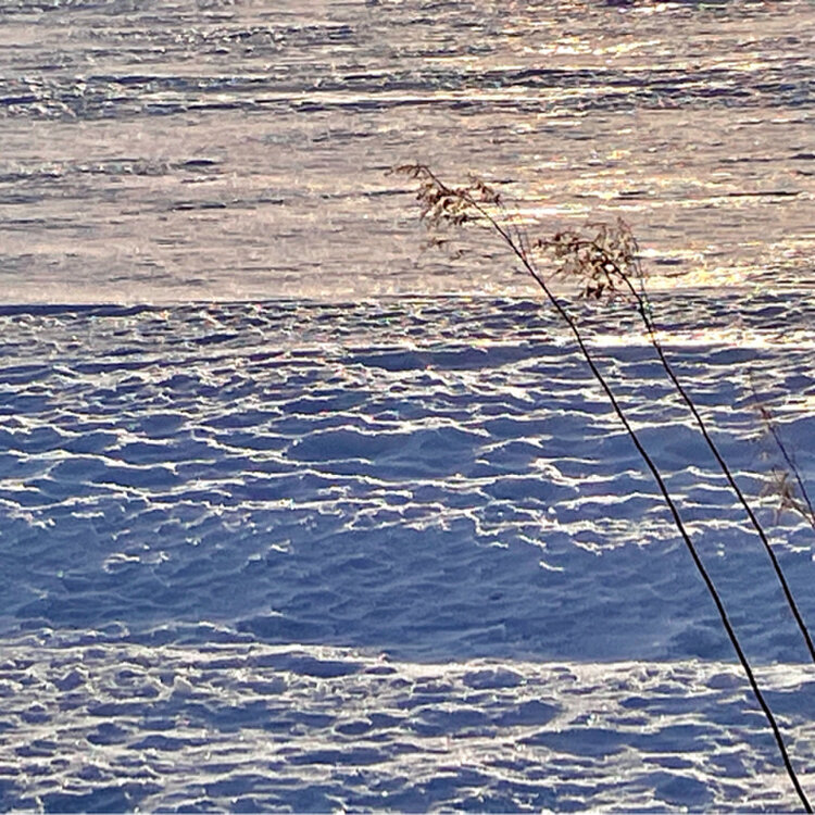煌めきの残り〜 雪解けに向かう時間は… 解けた雪原の表面が波のようになっていて そこに光が届き始めると 雪とは思えないような煌めきが見られます 真冬なら…ダイヤモンドダストが煌めきますが 季節は3月〜春へと向かっています 煌めきの残りを探して…