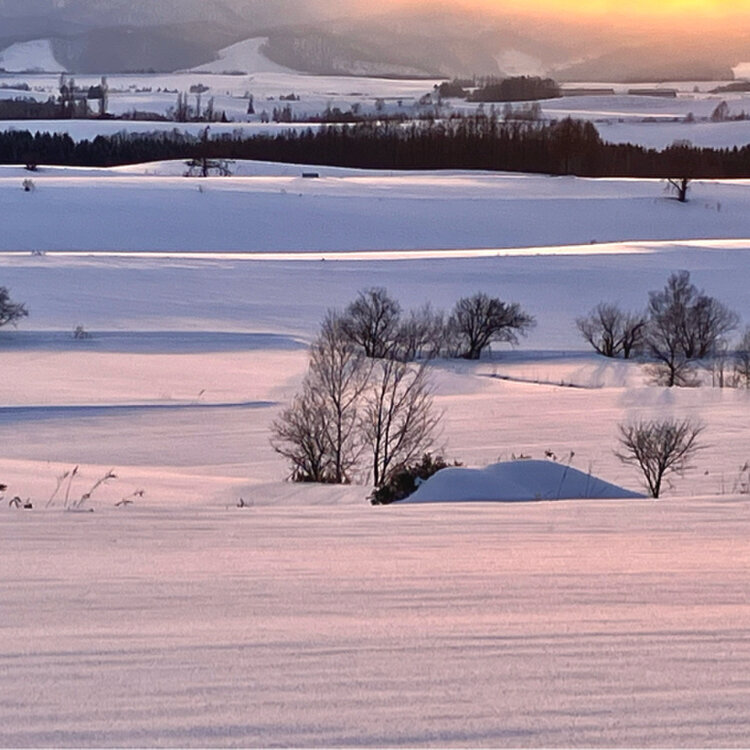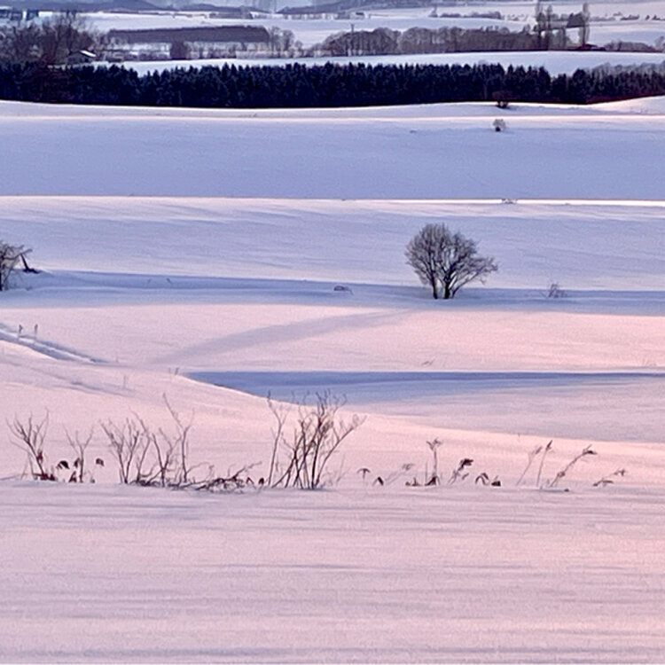 春へ向かう〜色 サンセットの時間に春の色を見つけました まだまだ雪の残る丘に サンセットの光が届くとこんな色になりました 少しだけ…オレンジとゴールドを混ぜたピンク色 影になる部分はライトパープル とても美しくて サンセットと一緒に消えてしまうのが惜しくて 何度も何度も足を止めて沁み込ませました もう少し先の別の場所から…と思いましたが その先はまだ除雪されていなくて ただ…ただ…雪原が続くばかりでした #丘のある風景 #ひみつの絶景北海道 #ことりっぷ富良野・美瑛・旭川 #雪解け #美しい午後 #美しい光 #サンセット #春の色